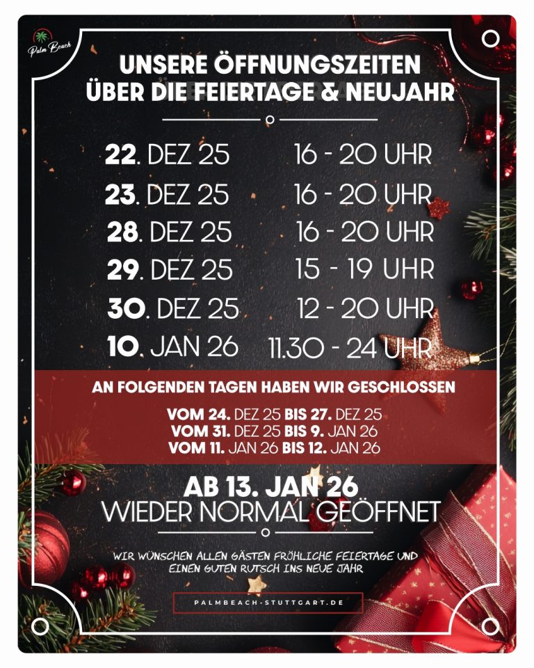 An Tagen vor Feiertagen haben wir auch bis 01.00 Uhr offen.